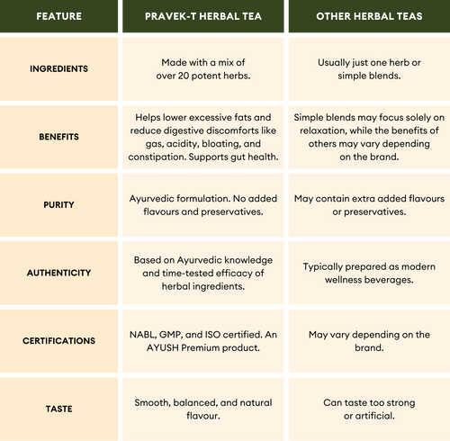 As single-herb teas are consumed for different health benefits, like providing relaxation from stress, digestive issues, etc. Pravek-T is made with over 20 natural herbs and is NABL lab-tested for having nutritional values that help provide multiple health benefits. In addition, it is caffeine-free, sugar-free, and contains only herbs and zero tea leaves.