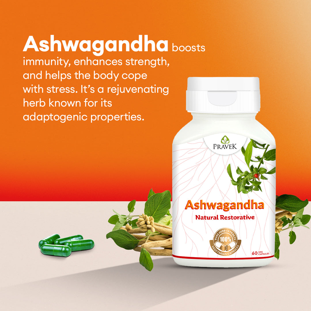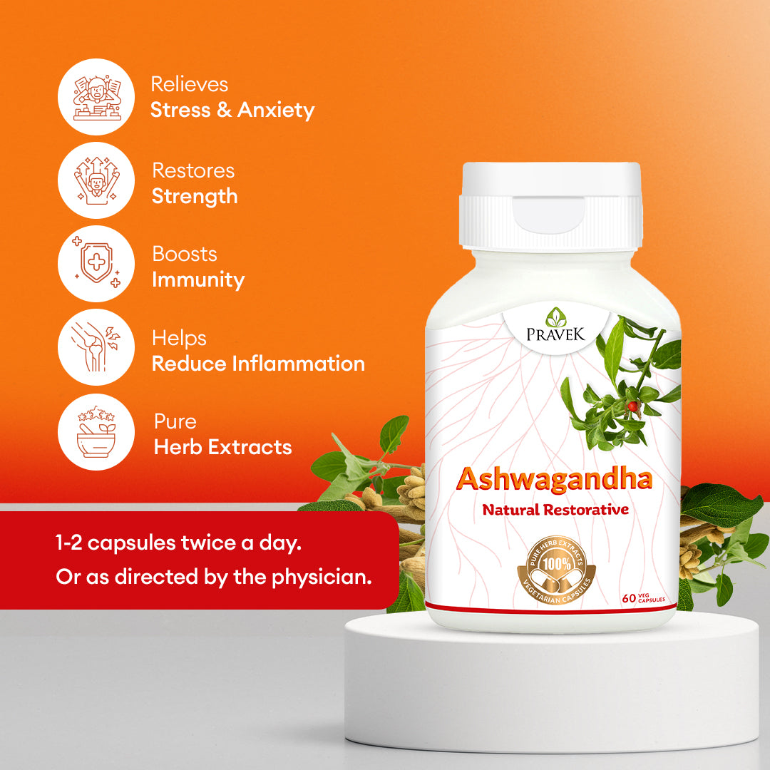 Ashwagandha acts as a natural stress relief pill that helps calm the mind and reduce the effects of anxiety, stress and fatigue. Ashwagandha helps the body recover from physical and mental exertion. For a comprehensive regimen tailored to a specific concern, it is advisable to consult a healthcare professional before beginning any medication or supplement.