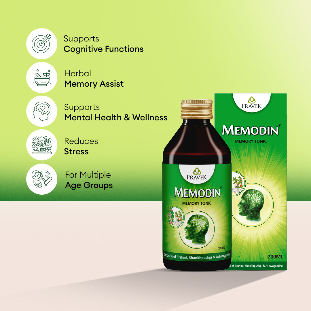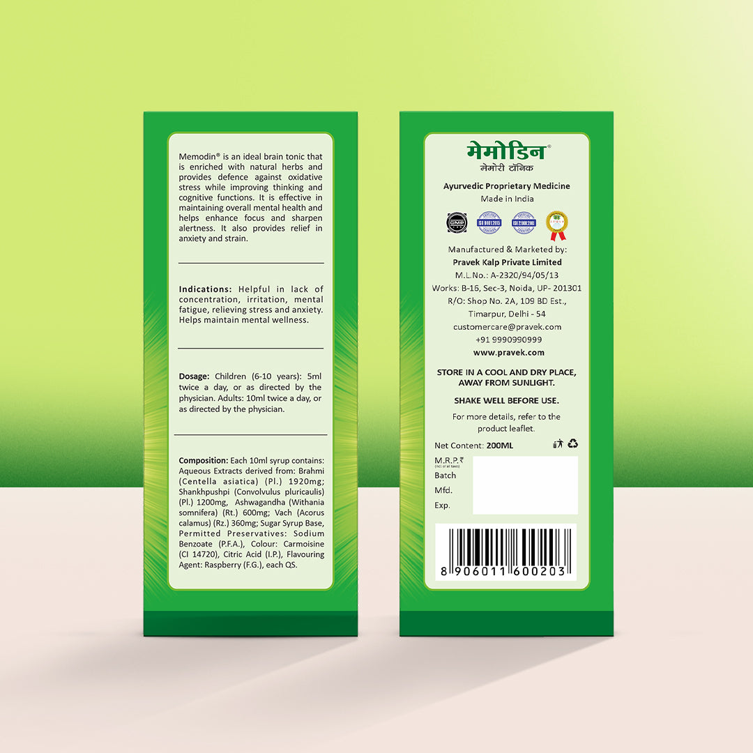 It benefits students, working professionals and those who are suffering from anxiety, insomnia, stress, irritation and mental fatigue. Memodin Syrup is safe for both children (above ages 6) and adults. For a comprehensive regimen tailored to a specific concern, it is advisable to consult a healthcare professional before beginning any medication.